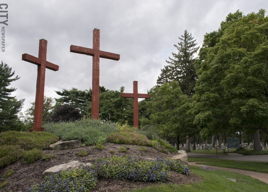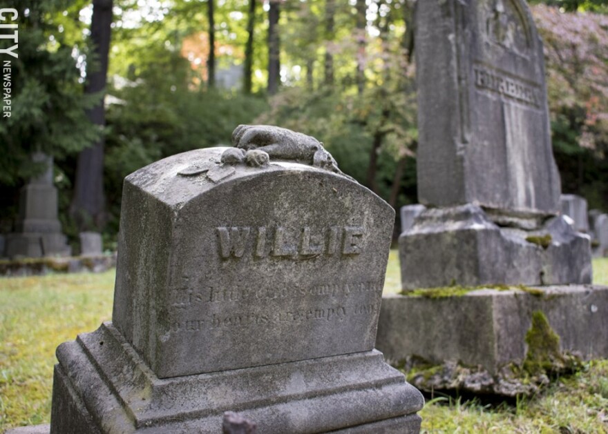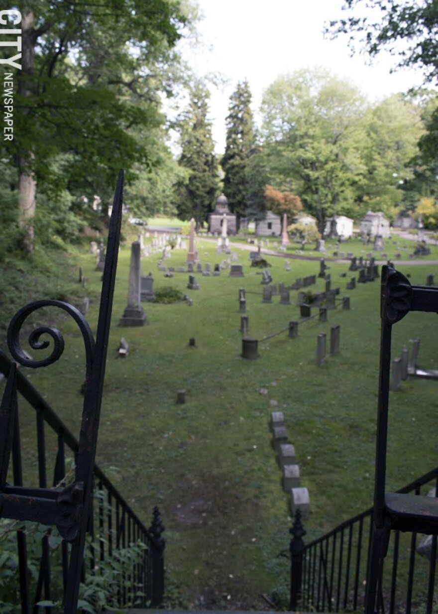 If you're not paying attention, you could temporarily lose your bearings in the hilly, labyrinth-like ramble that is Mount Hope Cemetery. Though its acreage is doesn't quite reach 200, the place feels massive, given the undulating terrain and grand architecture of the crematorium and various mausoleums that pepper the landscape.